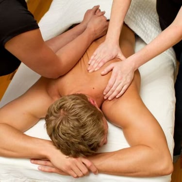 A synchronized massage by two therapists working together for an intensely relaxing experience.